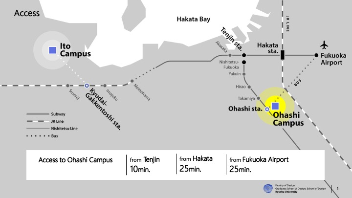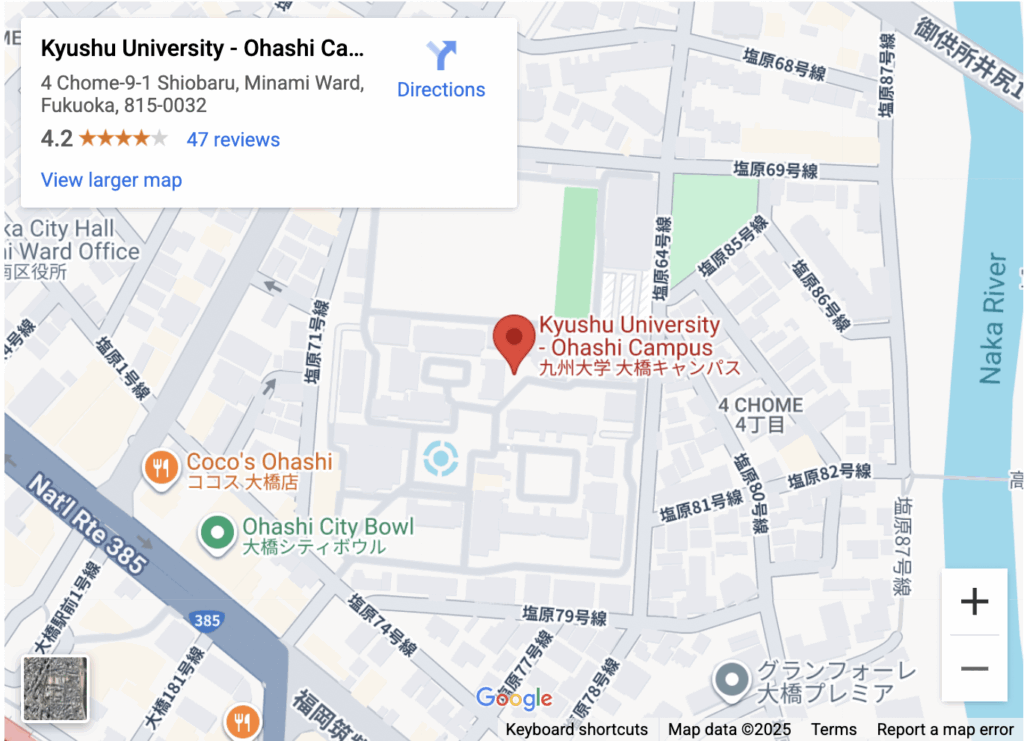 The Ohashi Campus is conveniently located—about 10 minutes from Tenjin, 25 minutes from Hakata Station, and 25 minutes from Fukuoka International Airport (FUK).